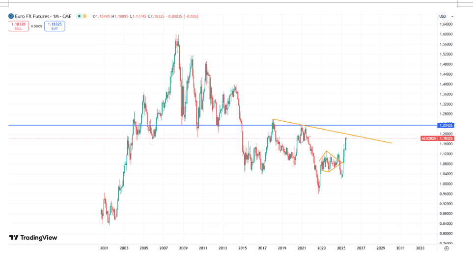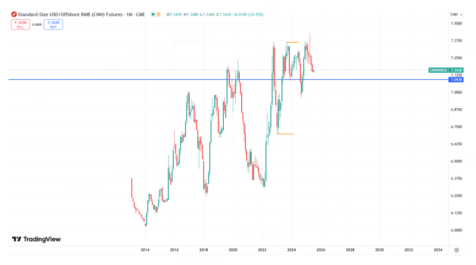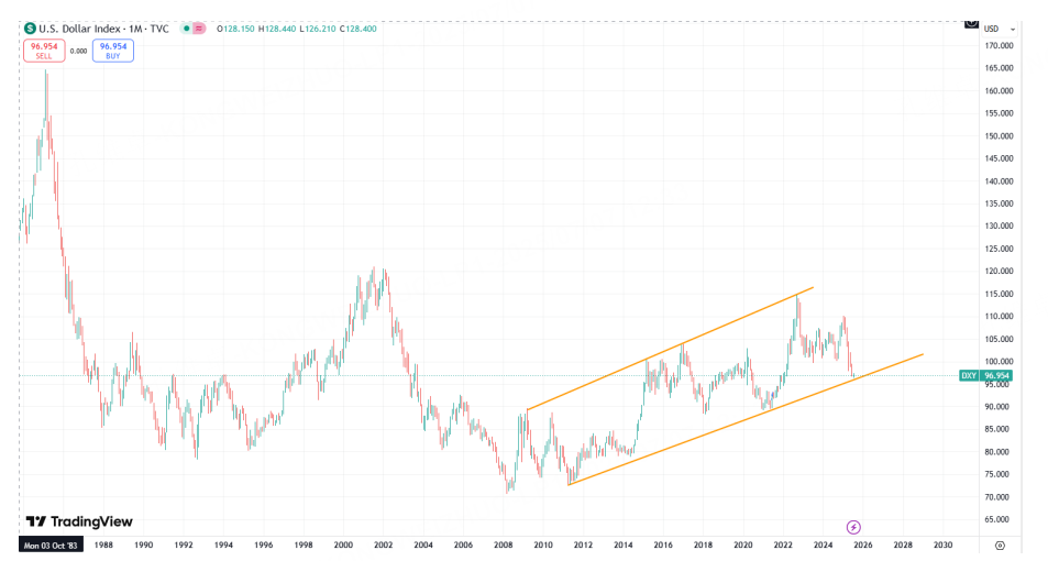 关于美元行情在特朗普上台并主导了关税战争后的逻辑变化此前我们已经讲过,美元因此在过去数月出现了持续性的下跌。从当下基本面和货币政策对比来看,这种跌势显然是超前和预期未来风险的。是否会出现进一步的下跌,除了要看后续话题和消息面的变化,也可以留意当下关键性长期支撑能否有效。