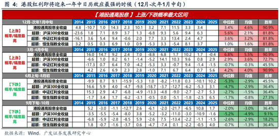 12月:过去20年,指数在12月涨跌各半,不过基本面定价的有效性较11月增强;风格方面,大盘优于小盘,红利占优,金融板块涨幅居前,港股红利也迎来一年中日历效应最强的时段。