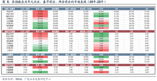 1月:指数在1月的上涨概率仅43%,小盘股上涨概率仅31%,主要受年报预告压制风险偏好影响。